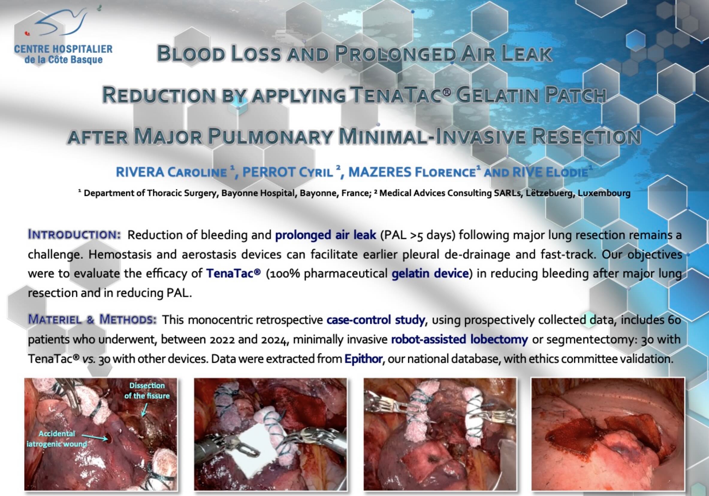 “Mean drainage duration and length of stay were reduced with TenaTac® by 36 hours…TenaTac® significantly reduces the incidence of PAL” – Dr. Caroline Rivera, Thoracic Surgery Department, Centre Hospitalier de la Côte Basque